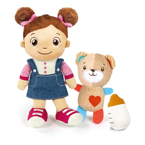 Una dolce bambola da coccolare e di cui prendersi cura giocando ad imitare i grandi. La bambola è dotata di tanti accessori per la pappa e per la nanna. La scatola può essere usata anche come scenario per creare tante storie giocando con la bambola. Supporta il gioco imitativo e incentiva lo sviluppo affettivo. Lavabile in lavatrice.