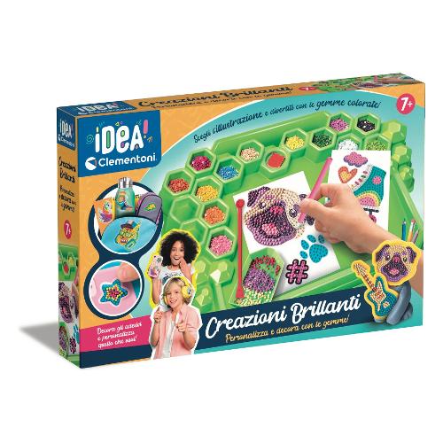 Gemme colorate e sfavillanti per realizzare preziosi adesivi 3d. Una tecnica semplice e moderna per creare stickers trendy con cui personalizzare borse, zaini scuola, quaderni e tanto altro ancora. Un'attività moderna e creativa per migliorare la concentrazione e sperimentare la propria manualità, per allenare mani e testa! Il risultato è sorprendente perché sfavillante e facile da realizzare, per un gioco a misura di bambino. Una volta creato lo sticker 3d basta solo scegliere dove applicarlo, per personalizzare il proprio stile in poche semplici mosse. Tutto l'occorrente per creare la propria postazione, organizzare lo spazio e iniziare a creare. Il banchetto può ospitare i fogli su cui lavorare, gli strumenti e le gemme suddivise per colori. Contiene un manuale illustrato che guida i bambini in ogni step, la speciale penna cattura gemme e fogli colorati e numerati per semplificare l'applicazione dei diamantini. Gli stickers 3d si prestano ad essere attaccati ovunque! Incluso un panetto di creta per realizzare piccoli animali, da completare con sagome in cartoncino che ospiteranno gli stickers con le gemme.