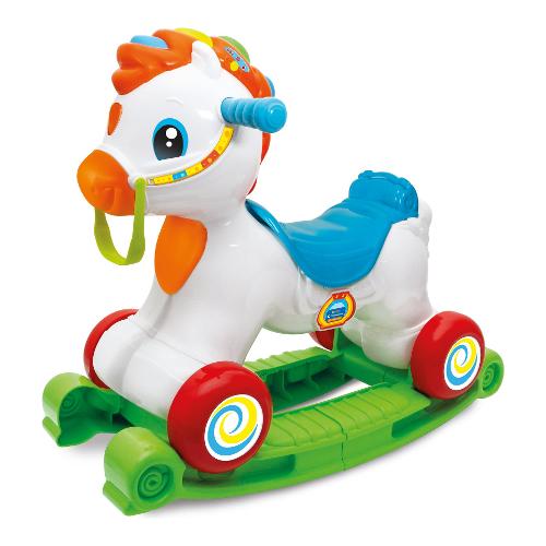 Un dolce cavallino 3 in 1 che è dondolo, cavalcabile e centro attività interattivo! Martino grazie ad un sensore, riconosce l'attività del movimento e intrattiene il bambino con effetti sonori realistici, simpatiche frasi e canzoncine. I tasti sulla criniera insegnano lettere, versi e nomi degli animali mentre è possibile imparare i numeri grazie al rullo girevole. Insegna anche lo spagnolo. Ricco di canzoncine e simpatiche filastrocche. Stimola la motricità, lo sviluppo affettivo e del linguaggio. Made in italy