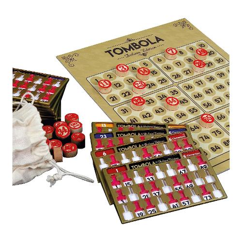 Un classico dei giochi da tavolo in una nuova e pregiata edizione, per giocare e passare le festività natalizie in compagnia di amici e famiglia. Contiene 36 cartelle dotate di finestrelle, un tabellone e il sacchetto con i 90 numeri in legno. Un gioco che non passa mai di moda e che continua a coinvolgere grandi e piccoli.