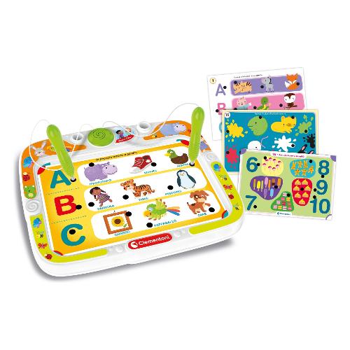 Banchetto, schede educative e spinotti: classico tra i giochi educativi con 16 schede e 32 attività che propongono un programma di domande a difficoltà crescente che tocca tutti i temi tipici dell'età prescolare. Il bambino risponde alle domande collegando due immagini attraverso e penne elettroniche che lo avvisano con una simpatica frase in caso di associazione corretta. Batterie incluse nella confezione
