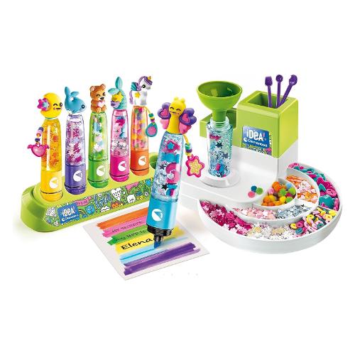Un creativo ed originale laboratorio che permette di assemblare dei simpaticissimi evidenziatori un pratico e ricco kit composto da filtri, punte, inchiostri, personaggi e tutti gli strumenti per realizzare gli evidenziatori il gioco è molto facile: immergi il filtro nell'inchiostro, inseriscilo in una base, aggiungi la punta e chiudi tutto con il tappo il nuovo gioco idea consente di creare e personalizzare i propri evidenziatori con tanti accessori e colorazioni. Un concetto che va oltre la semplice attività di personalizzare il proprio evidenziatore. Si può creare dando sfogo alla fantasia