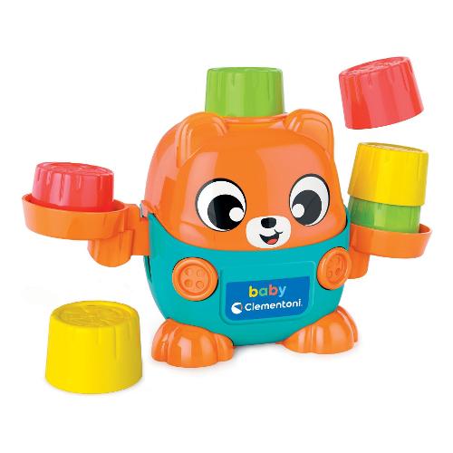 Il bambino può divertirsi ad impilare i tronchetti sopra la testa dell'orsetto.