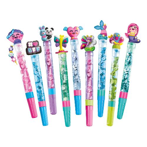 Confezione include penne, inchiostri di diversi colori, personaggi e tutti gli strumenti per realizzarle.