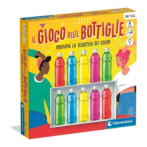 Gioca in compagnia al gioco delle bottiglie, ideale per tutta la famiglia, in cui indovinare l’ordine delle bottiglie scelto dall'avversario prima che esauriscano i tentativi a disposizione. Cerca di indovinare la sequenza di bottiglie colorate scelta dal tuo avversario prima che finiscano i tentativi a tua disposizione. Un gioco ideato per stimolare il ragionamento logico, strategia e memoria, garantendo ore di gioco e risate con amici e familiari. Include 20 bottiglie, 2 scatole, 1 plancia, 1 segnalino e il regolamento, per riprodurre le dinamiche del celebre party game