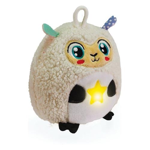 Questa morbida pecorella è una luce notturna e un peluche per facilitare il rilassamento e l'accompagnamento al sonno. come tutti i personaggi della linea Twinkle Twinkle si illumina attivando melodie rilassanti e suoni bianchi studiati per facilitare l'addormentamento del bambino. La luce calda aiuta ad allietare l'ambiente intorno al bambino, mentre suoni e melodie incoraggiano il rilassamento. Gioco adatto a neonati a partire dagli 0 mesi, ma anche per bambini di 6 mesi o più nella fase di transizione all'addormentamento autonomo. Lavabile in lavatrice estraendo il modulo elettronico. Ideato, progettato e sviluppato in Italia.