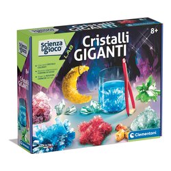Un gioco con tutto l'occorrente per creare brillanti cristalli giganti colorati! Crea simpatiche formine in gesso e impreziosiscile con cristalli luminosi. Uno stampo per riprodurre un affascinante geode da impreziosire con tantissimi cristalli colorati. Nel ricco manuale scientifico si potranno scoprire tutti i segreti della formazione dei cristalli e le reazioni chimiche dei sali! Made in italy