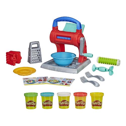 Ispirato alle classiche macchine per la pasta a manovella, questo giocattolo play-doh per creare tagliatelle è uno strumento fantastico perché i bambini possono immaginare di creare i propri piatti di pasta play-doh. Utilizza i 2 accessori della macchina per cambiare lo stile e lo spessore delle finte tagliatelle. Il set da gioco contiene un sacco di mezzi stampi per creare le forme miste più strane e dischi laterali pazzeschi per produrre verdure finte e uova immaginarie. La stampatrice e lo stampo possono creare altre forme ancora di pasta finta come farfalle e ravioli che sembrano veri. Condiscila con la grattugia per formaggio play-doh! Con 5 vasetti standard da 2 once di composto play-doh atossico, hai un sacco di colori con cui iniziare. Questo giocattolo per creare cibi finti è un regalo ideale per i bambini da 3 anni in su, per giocare a creare cibi finti in qualsiasi momento. Guarda le 2 schede creative per alcune semplici idee creative!