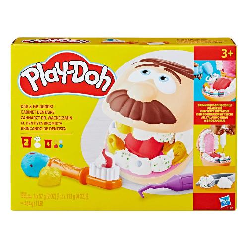 Anche se può spaventare un po’ andare dal dentista, i bambini potranno assumere il controllo della situazione e far finta di essere un dentista con questo playset Play-Doh. I bambini potranno chiedere al paziente di tirare fuori la lingua Play-Doh, poi usare lo stampino dei denti per creare facilmente e subito un’intera fila di denti Play-Doh. Usa il trapano manuale giocattolo per penetrare quelle carie, poi schiaccia le otturazioni Play-Doh dalla siringa per curarle. I colori argento e oro della pasta da modellare Play-Doh sono perfetti per creare apparecchi finti con il rullo e otturazioni per carie con la siringa. La confezione include pasta nodellabile 4x57gr e 2x113 gr e accessori: trapano, rullo per apparecchio, stampino dei denti, spazzolino, siringa, specchio, stecchino, filo interdentale, pinzette
