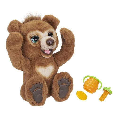 FurReal Cubby, il peluche interattivo è il compagno dei sogni per bambini dai 4 anni in su – colui che parteciperà con entusiasmo a tutte le loro avventure, accoccolandosi al loro fianco a fine giornata. Cubby è un giovane orsetto curioso, desideroso di essere preso e stretto tra le braccia (ti abbraccia anche lui!), desideroso di giocare a bubusettete e anche di ballare di tanto in tanto. E non dimenticare l'ora dello spuntino! Dagli il suo biberon o il dolcetto ed emetterà rumori come se stesse mangiando. Si tratta di un orsetto chiacchierone - risponde dopo aver parlato lui. In modalità notturna, questo tesorino chiude gli occhi, emette suoni mentre dorme e riproduce una delle quattro sequenze di musica soft della durata di 5 minuti. Sogni d'oro, Cubby! Con occhi, naso e bocca in movimento, il suo musetto è deliziosamente espressivo - un cucciolo assolutamente adorabile!