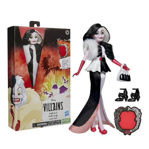 Indipendenti, sicure di sé, indimenticabili e, ovviamente, malvagie: le leggendarie cattive dei film disney sono sempre maledettamente alla moda. Questa fashion doll di crudelia de mon da 28 cm malvagiamente elegante è dotata di un look ispirato al suo personaggio nel film disney la carica dei 101 con uno splendido abito bianco e nero abbinato ai suoi appariscenti capelli, oltre a un paio di scarpe, un colletto in pelliccia sintetica, sopraggonna e borsa. Gli accessori sono nascosti negli scomparti segreti della confezione: sarà uno spasso aprirla! I bambini e le bambine dai 5 anni in su possono trovarli utilizzando la lente inclusa e aprirli per scoprire cosa c’è all’interno. Oppure, possono utilizzare la lente per cercare le immagini nascoste nel vestito di crudelia de mon. Cerca anche altre fashion doll dei personaggi disney villains come la regina cattiva, malefica e ursula. Ciascuna venduta separatamente, secondo disponibilità. Il copyright disney hasbro e tutti i termini correlati sono marchi commerciali di hasbro.