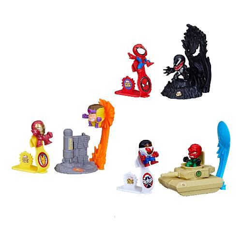 Potenti eroi! Marvel stunt squad eroi vs. Cattivi playset è un set di action figures che i bambini adoreranno. Con i personaggi marvel preferiti in un classico schema di gioco eroe contro cattivo, queste figure di supereroi in scala ridotta sono piene di pose dinamiche e divertimento ricco di azione! I playset marvel stunt squad ero vs. Cattivi includono due figure in scala 1 pollice, un lanciatore e una base per il bersaglio.
