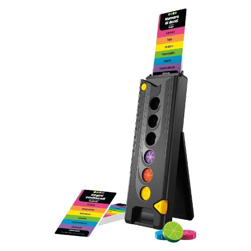 In Drop Trivia, i giocatori hanno già tutte le risposte: devono solo farle cadere nel giusto ordine! Questo gioco elettronico di trivia dal ritmo incalzante si gioca in soli 15 minuti. Giocabile a squadre o in 2 giocatori per una sfida testa a testa. All'inizio di ogni round, lascia cadere nella torre di gioco una carta con 6 risposte. A turno, ogni squadra cerca di indovinare l'ordine corretto delle risposte per ottenere punti. Ad esempio, classifica i 6 album di debutto dal meno recente al più recente. I giocatori formulano le loro ipotesi facendo cadere i dischi nella torre e guadagnano punti per le risposte inserite nei punti giusti. Per un'esperienza simile a quella di un gioco televisivo, la torre guida i giocatori durante la partita con comandi vocali ed effetti sonori. Dopo 4 round, vince il giocatore con più punti! Sei alla ricerca di giochi da tavolo o di società divertenti per adulti? Questo gioco è molto popolare ed è un'ottima idea regalo per gli adolescenti e gli adulti che adorano i giochi da tavolo a quiz.