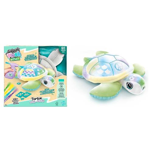 Airbrush plush tartaruga green un peluche sostenibile, realizzato con imbottitura e tessuti riciclati, per sensibilizzare i più piccini verso il rispetto dell'ambiente. questa dolce tartaruga è totalmente personalizzabile con i pennarelli e gli stencil inclusi. Spruzzando il colore attraverso l'aerografo elettrico, chiunque potrà esprimere la propria creatività e rendere unico il proprio peluche! Basterà lavarlo per rimuovere tutti i colori e ricominciare a giocare! La confezione comprende 1 tartaruga peluche, 1 aerografo elettrico, 2 fogli con oltre 100 stencil riutilizzabili e 4 pennarelli spray lavabili adesivi