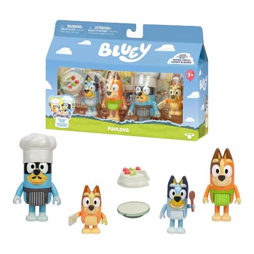 Direttamente da uno degli episodi più amati di Bluey, ecco la famiglia Heeler in edizione chef! Divertiti con questa versione esclusiva dei personaggi e aiutali a preparare la torta perfetta!