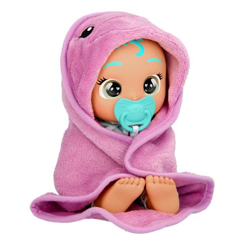 Personalizzato ed è pronta per giocare e godersi li momento del bagno. Quando si bagna, emette suoni di bambino come balbettii, risatine e talvolta piange. Include un asciugamano personalizzato per avvolgerla dopo li bagnetto e un ciuccio coordinato. Quando