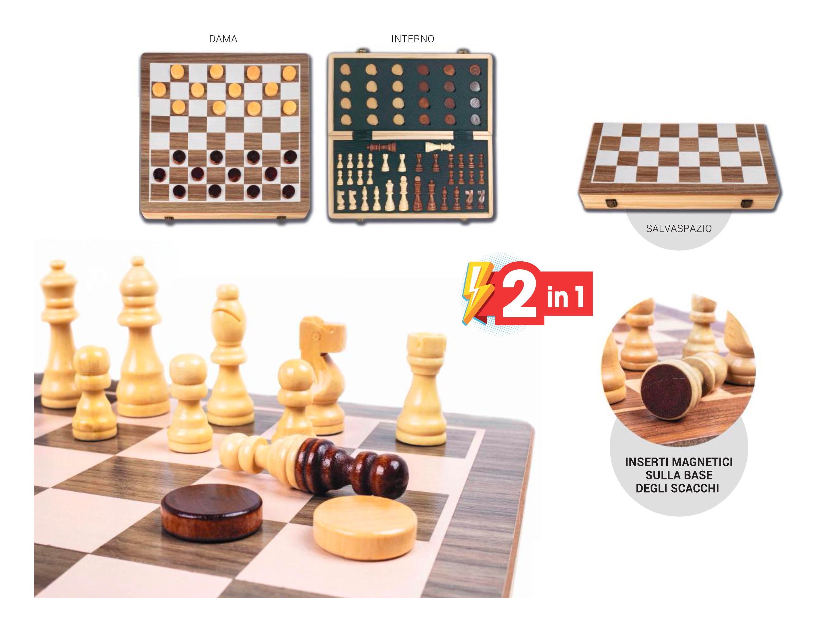 Scacchiera Dama 2 in 1 magnetica pieghevole salvaspazio SPORT ONE 706205036