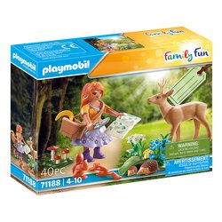 I bambini che amano la natura saranno entusiasti di questo gift set playmobil. Con playmobil gift set erborista i bambini possono vivere tante emozionanti avventure entrando nel mondo delle piante immersi nella natura..Per Essere sempre preparata, l' erborista ha con sé un libro sulle diverse specie di arbusti. Nella sua borsa a tracolla porta un falcetto e delle cesoie per piante. Il set contiene una figura playmobil, due ricci, due scoiattoli, un cervo, varie erbe e altri simpatici accessori.