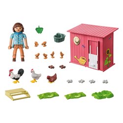 Cosa sarebbe una fattoria senza galline? Con questo coloratissimo playset playmobil, le galline possono trasferirsi nella tua fattoria. Il pollaio è dotato di due ripiani e di un trespolo e ospita due galline, un gallo e sei pulcini. Le galline e il gallo possono essere fissati al trespolo con i piedi. Il pannello scorrevole sul retro della casetta può essere aperto e chiuso. Dai un tocco personale al tuo pollaio con gli allegri adesivi inclusi. Il playset da 28 pezzi comprende un personaggio playmobil, un pollaio, due galline, un gallo e sei pulcini.