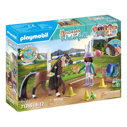 Waterfall ranch è il cuore del nuovo mondo dei cavalli di playmobil. Qui, i cinque migliori amici amelia, isabella, zoe, ellie e ben trascorrono ogni minuto libero insieme ai loro cavalli e vivono emozionanti avventure. Zoe ha obiettivi ambiziosi: vuole diventare la migliore saltatrice ad ostacoli di waterfall e si allena diligentemente ogni giorno con il suo amato cavallo blaze. I due sono una squadra ben coordinata e affrontano senza fatica ogni ostacolo del percorso di equitazione.