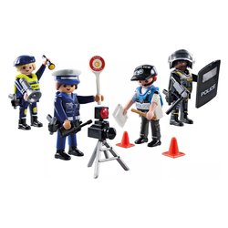 Tuffatevi in avventure poliziesche ricche di azione con questo dettagliato set di personaggi della polizia playmobil! Con quattro agenti e una serie di accessori realistici come fondine, megafono e scudo della polizia, le possibilità di gioco creativo sono infinite. Equipaggiate i vostri agenti per missioni ad alto rischio grazie a strumenti intercambiabili come un velox e una torcia elettrica.