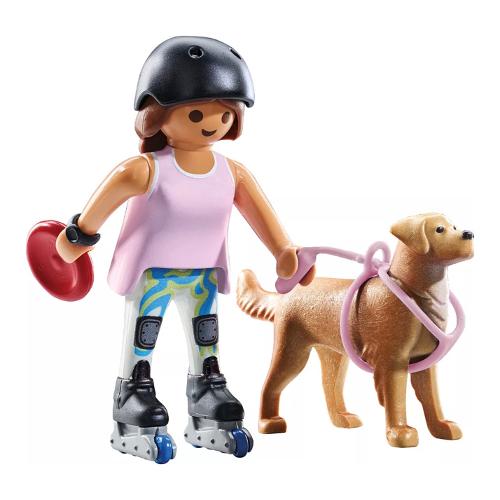 Preparatevi a una giornata di divertimento e movimento con il playset golden retriever con personaggio di playmobil! Guardate come l'atletica pattinatrice mostra le sue abilità mentre il suo giocoso cagnolino recupera il frisbee. Questa dinamica coppia è ricca di dettagli realistici: rimuovete i pattini, il casco e l'orologio da polso della pattinatrice per un gioco ancora più fantasioso. La testa mobile del retriever gli permette di unirsi all'azione, sia che stia giocando a prendere il pallone, sia che trotterelli felicemente con il guinzaglio e la pettorina.