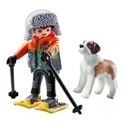 Sfida la natura innevata con l'escursionista playmobil e il suo fedele san bernardo! Equipaggiato con racchette da neve e bastoni, l'avventuriero è pronto a esplorare i sentieri ghiacciati, mentre il san bernardo lo segue fedelmente, con la testa mobile per un gioco realistico. I bambini ameranno personalizzare l'escursionista rimuovendo il copricapo e le racchette da neve per un divertimento ancora maggiore.
