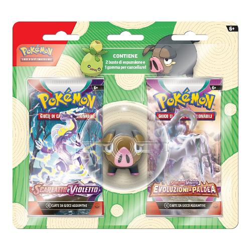 Ogni blister contiene 2 buste d’espansione + 1 gommina collezionabile raffigurante un Pokémon.