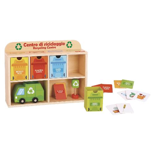 La raccolta differenziata è anche per i più piccini. All'inetrno della box 4 bidoncini colorati che ti aiuteranno a memorizzare come dividere i rifiuti. Inserisci le cards all'interno del contenitore corretto e trasporta tutto con il camioncino verde. Le dimensioni del centro attività sono: 31 x 24 cm.