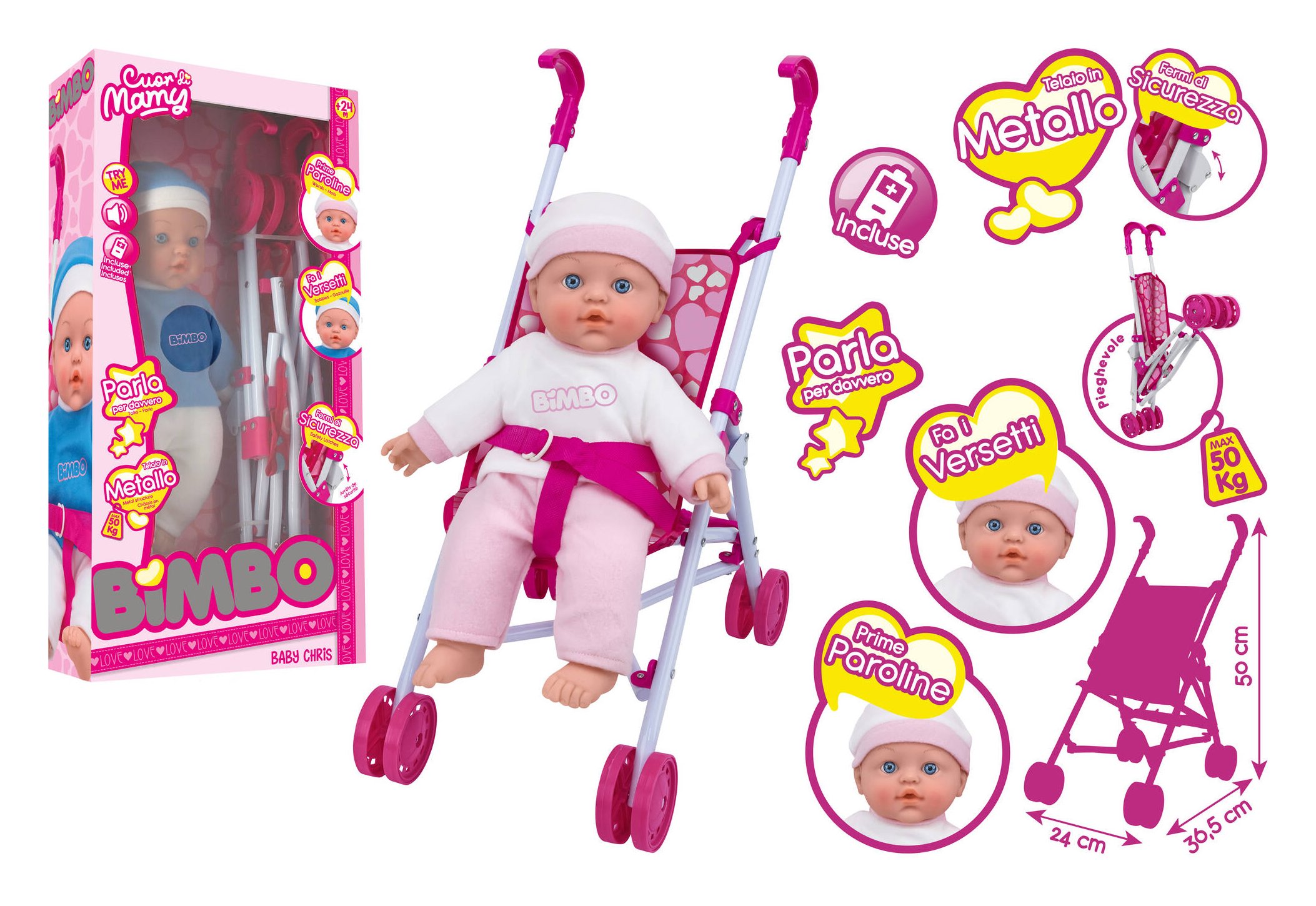 Set bambola Parlante con passeggino BIMBO Assortito 42481