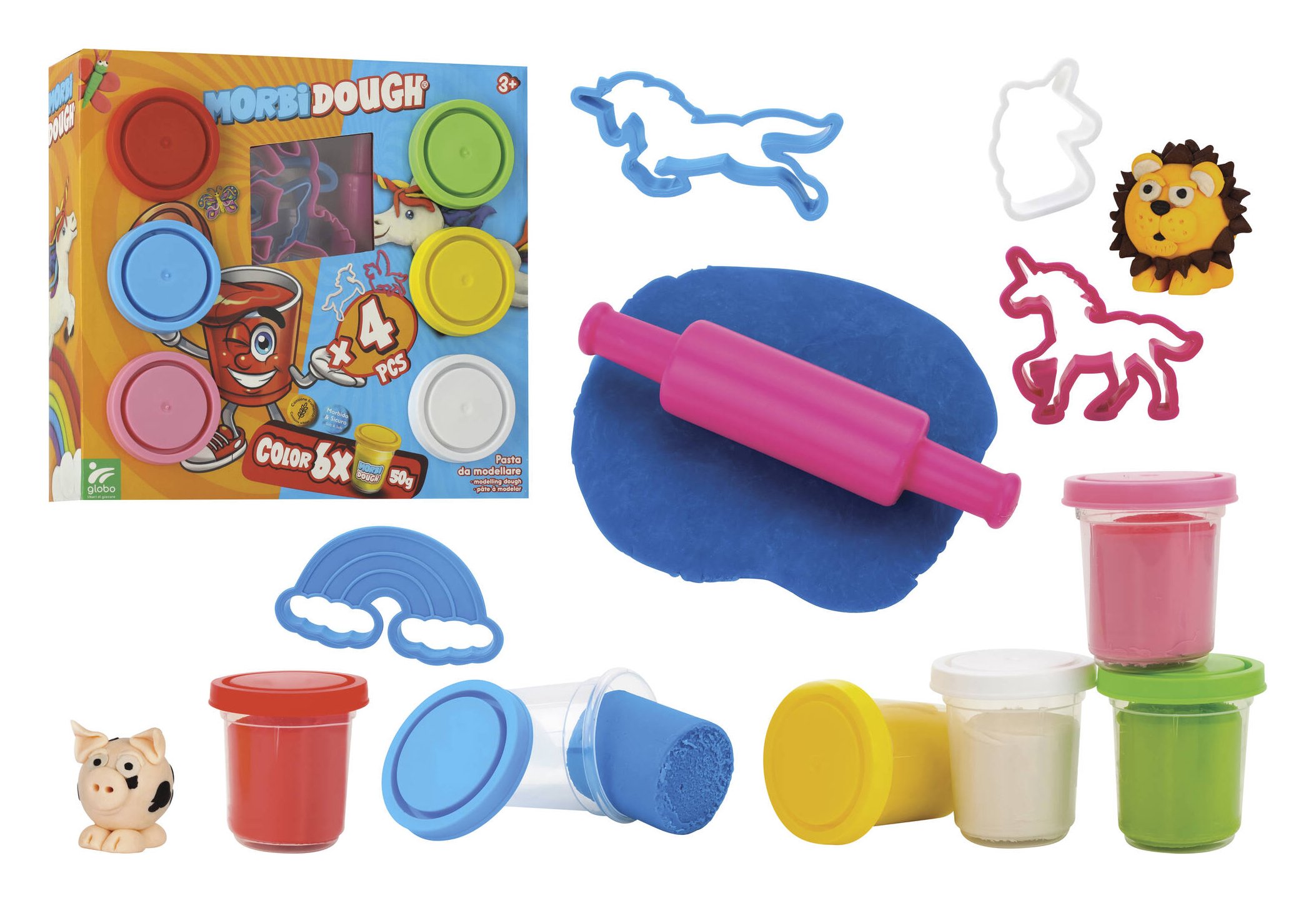 Globo Pasta modellabile Unicorno 6 vasetti 50 gr e accessori MORBIDOUGH 40384