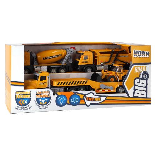 Set 4 mezzi da cantiere con frizione luci e suoni BIG ROAD Giallo 43020