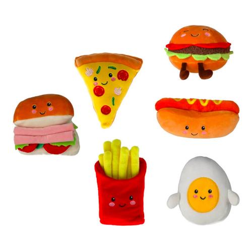 I tuoi cibi preferiti del fast food diventano peluche super soffici con espressioni buffe e irresistibili. Hamburger, hot dog, pizza...