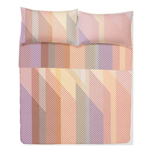 Completo letto in raso di Cotone con stampa geometrica moderna realizzata con digitale ad alta definizione. La lucentezza del raso aumenta l'effetto dei sottili dettagli multicolore