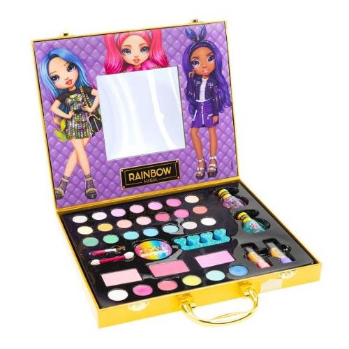 Un originale cofanetto contiene: lucidalabbra, ombretti, fard, smalti, lima unghie, separadita glitterato, applicatori e un comodo specchio! SENZA PARABENI.