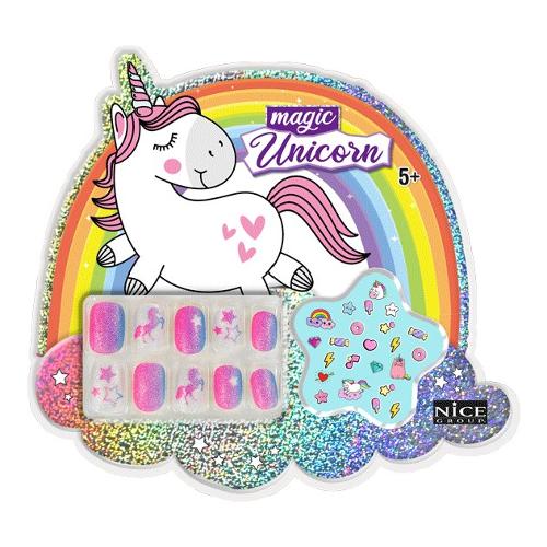 Piccolo blister unghie, contiene 10 unghie press-on e un foglietto di stickers colorati. Trucchi adatti alle pelli sensibili dei più piccoli.