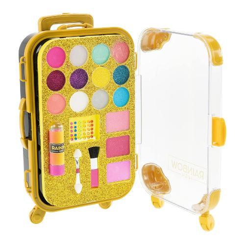Il simpatico cofanetto a forma di valigia può accompagnarti in ogni avventura e grazie al suo kit di trucchi potrai inventare nuove combinazioni in stile rainbow high, imitando la ragazza arcobaleno preferita. I trucchi per bambini sono testati, sicuri e certificati in laboratori italiani, risultando adatti anche alle pelli più delicate.
