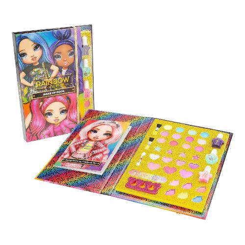 Impara a truccare viso e occhi in modo facile, sicuro e divertente con i colori e i temi Rainbow High. Diventa anche tu una delle studenti della scuola più fashion del mondo: crea il tuo stile ed esprimi la tua personalità giocando con il makeup in modo originale; applica i trucchi al tuo viso o provali sul booklet. Include 1 booklet, 1 pennello per occhi, 2 pennellini, 1 limetta, 1 separadita, 3 smalti, 12 ombretti, 8 lipgloss glitterati, 6 lipgloss, 3 blush. Senza parabeni. Tutti i componenti sono sicuri e testati presso laboratori internazionali.