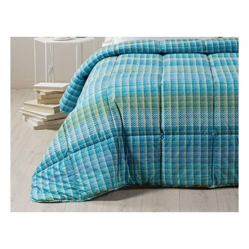 I più scenografici skyline, reticolati di palazzi e grattacieli, diventano ispirazione per un mood in cui forme allungate e parallelismi verticali giocano con trame d’archivio del guardaroba maschile. Sintesi complessa e raffinata di inediti scenari urbani. Trapunta con imbottitura Sofy in morbida fibra anallergica e altamente igienica 300 gr/mq