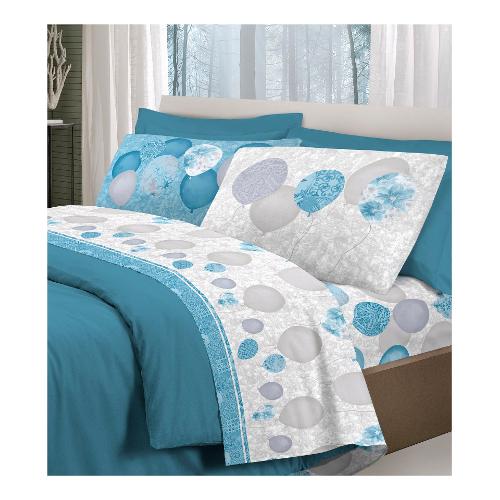 Savoltex Completo letto piazza e mezza cotone PENSIERI Palloncini azzurri