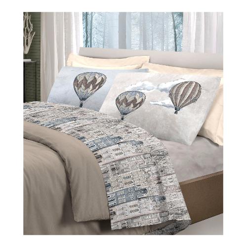 Completo letto due piazze cotone PENSIERI Volare beige