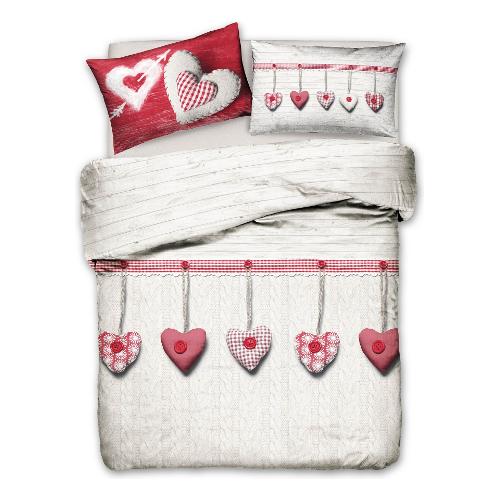 Savoltex Parure copripiumino due piazze PENSIERI Cuori appesi rosso