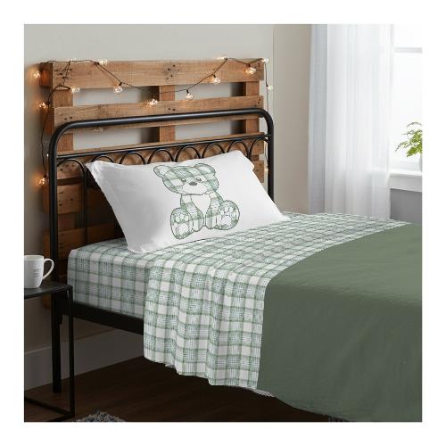 Completo letto piazza e mezza cotone PENSIERI Orsetto verde