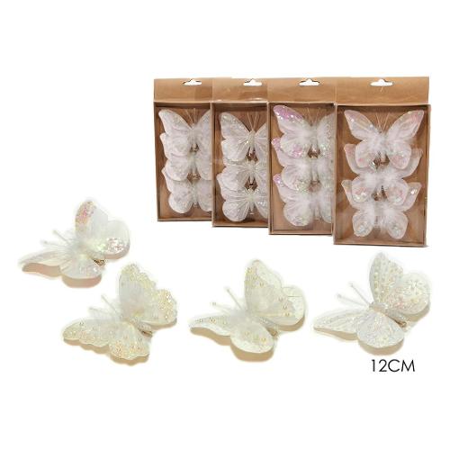 Farfalle Plastica, Metallo (12cm) (3pz) Assortito Bianco 429646
