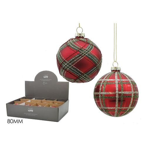 Pallina albero Natale (1pz-8cm) Vetro Assortito Rosso scozzese 402977