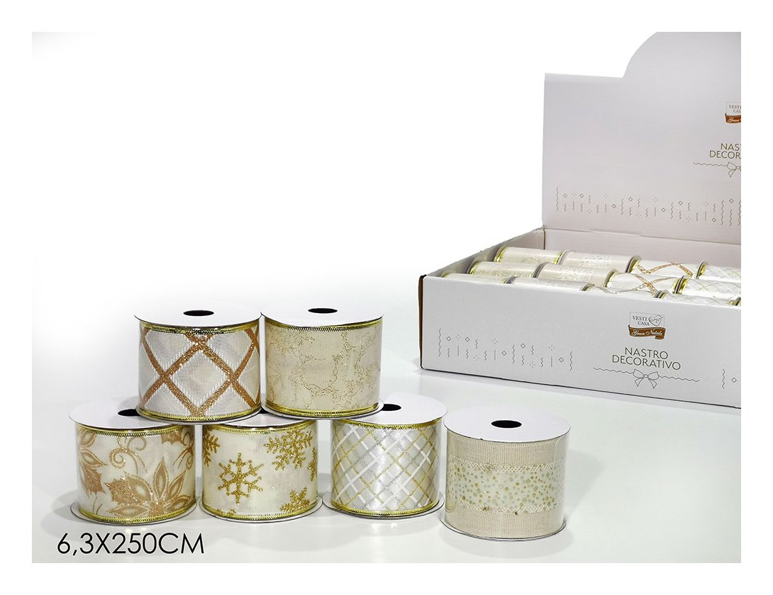 Nastro (63mmx2,5m) (1pz) Assortito Bianco e Oro 412686