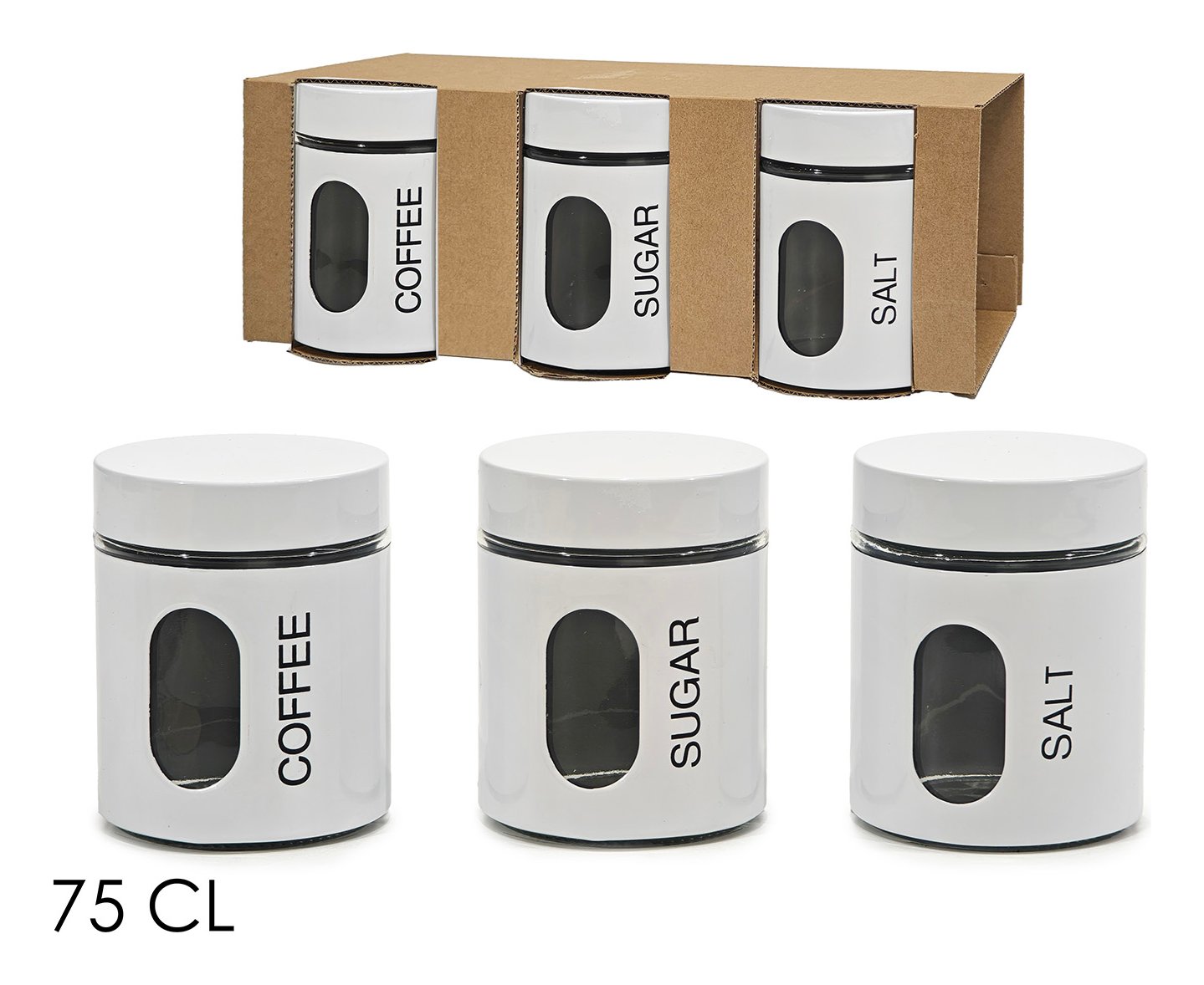 Set barattoli 3 pz Sale, Zucchero e Caffè (750ml) Bianco 479204