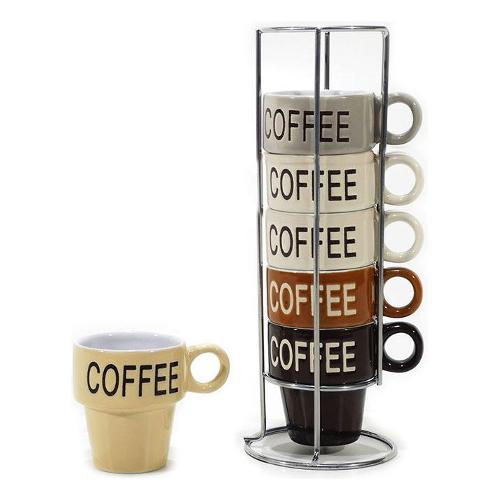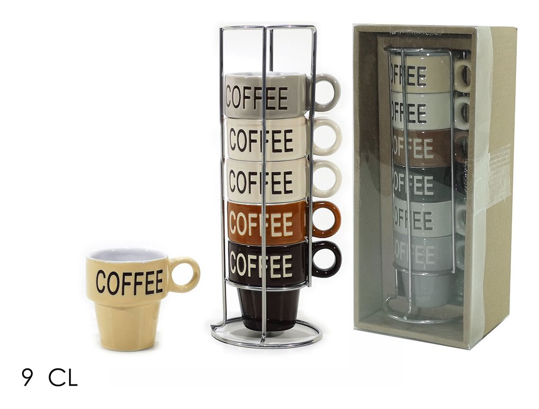 Set tazzine caffè porcellana 6 pz (90ml) con stand metallo GUSTO CASA Colori assortiti 519300