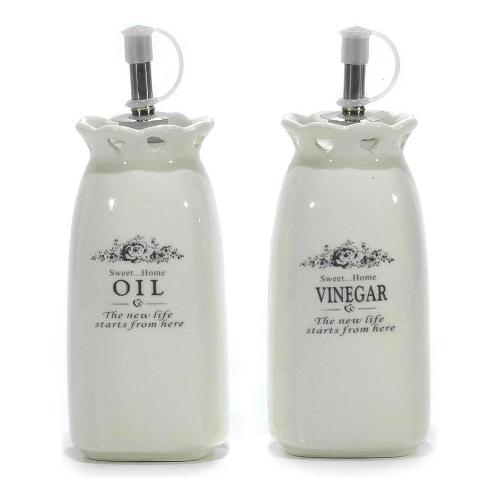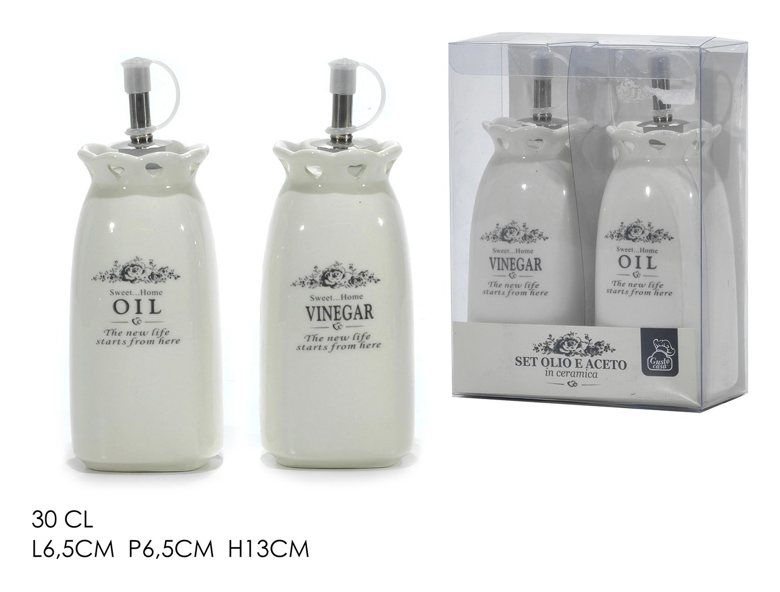 General Trade Set condimento 2 pz Olio e aceto con beccucci acciaio GUSTO CASA Bianco 527015