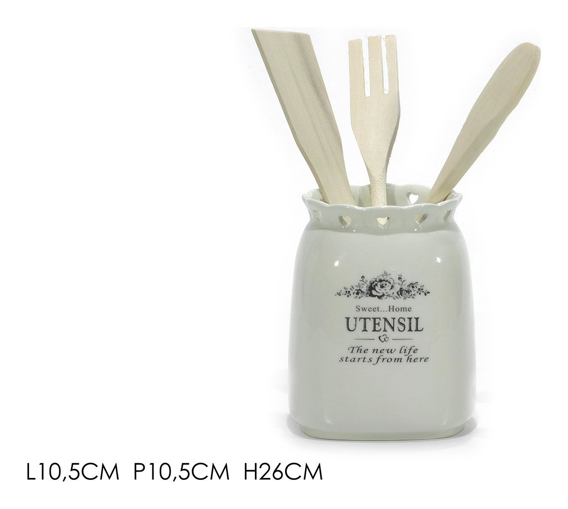 Porta mestoli con 3 utensili legno Bianco 527016